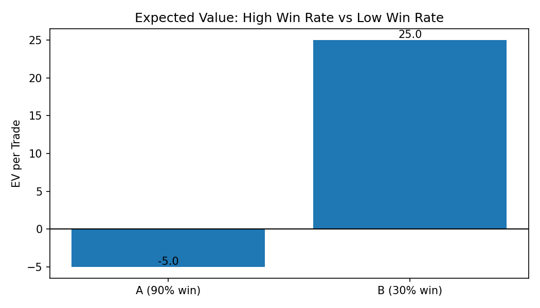 People love high win-rate strategies. They feel safe and consistent. But win rate alone is meaningless.